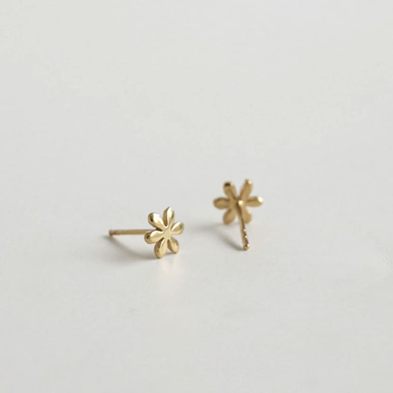 Модные серьги-пусеты в виде цветка ромашки из серебра с заполнением золотом 14 карат