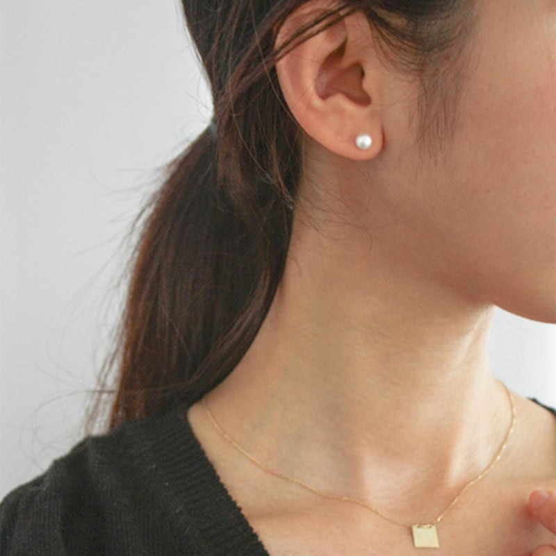 modernlike 14K gold-filled silver freshwater pearl piercing earrings 6mm