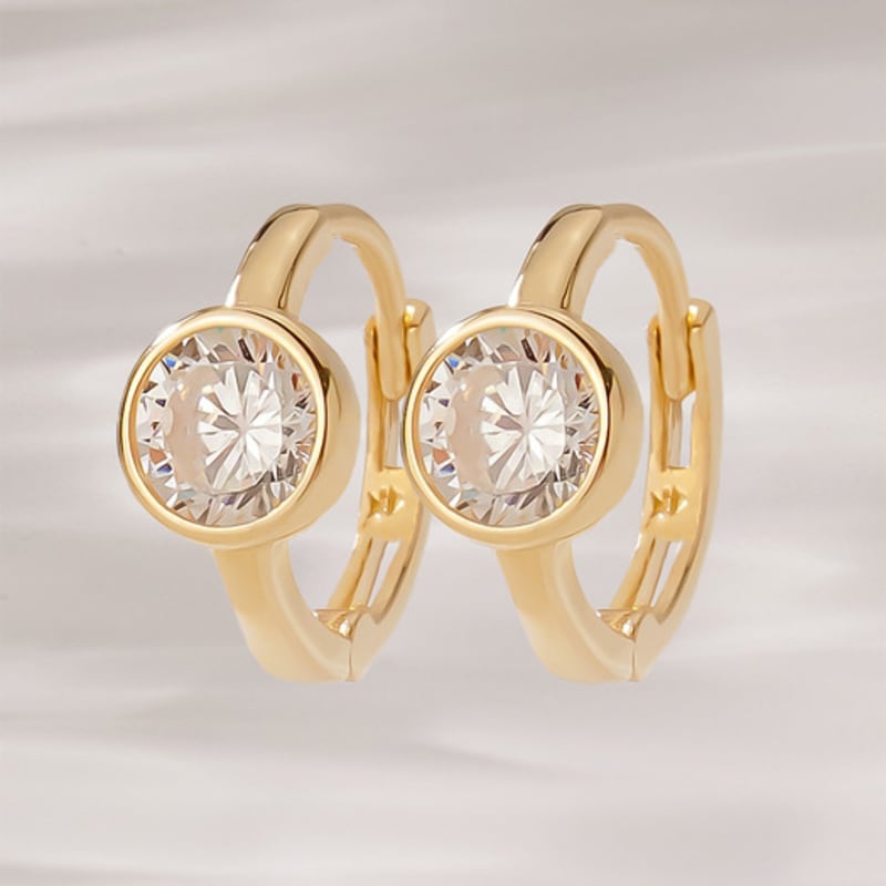 JEWNEL 14K Mini Well Bezel Cubic One-Touch Small Hoop Earrings for Earlobe (3 sizes)