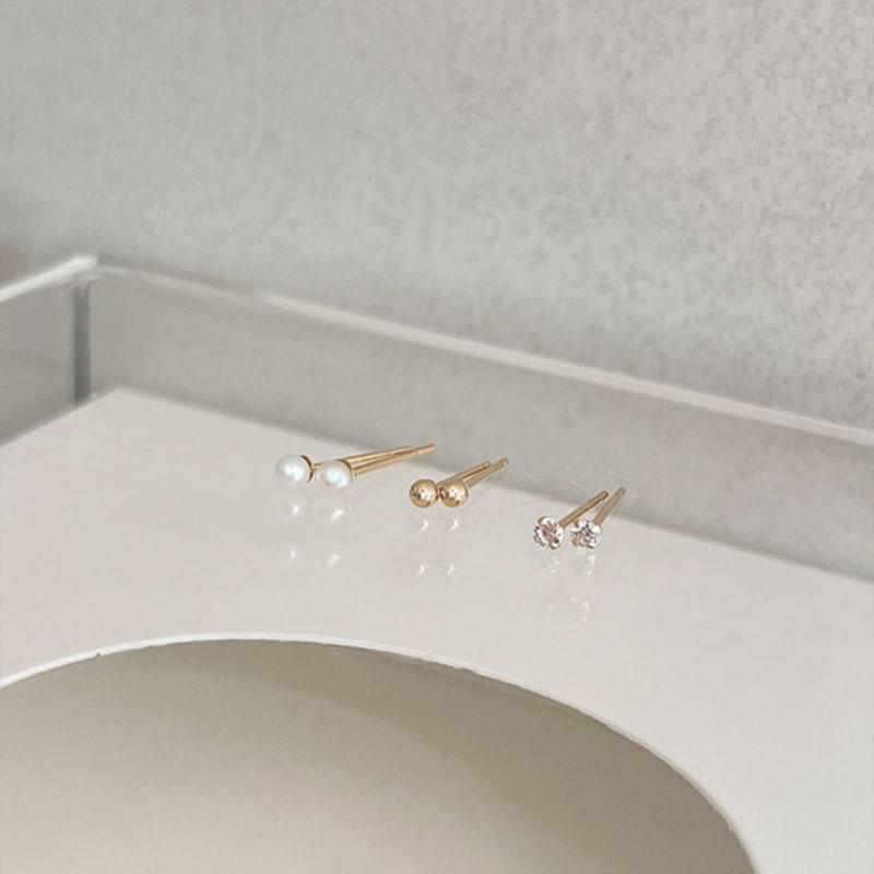 Тауп [Эксклюзив] Мини-серьги из 14-каратного золота - Шарики 2 мм, Кубический цирконий, Серьги с жемчугом пресноводным