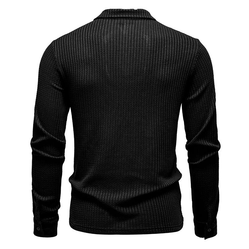 Мужская рубашка поло с длинным рукавом, повседневный текстурированный топ для мужчин, весенне-осенняя мода, разноцветная, на пуговицах, с отложным воротником, мужская блузка