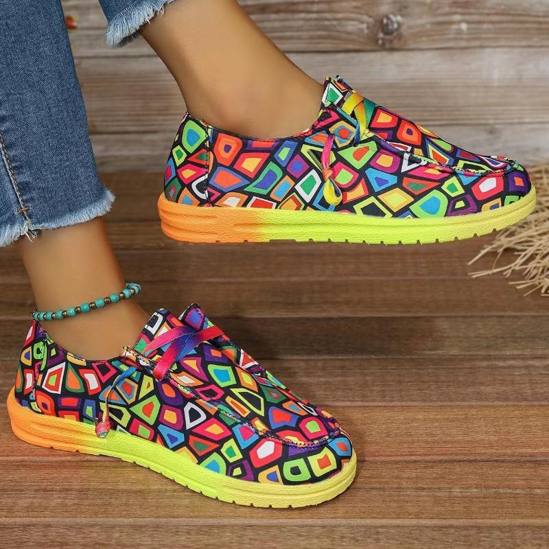 2025 Новые цветные туфли на шнуровке большого размера с низким верхом, женские холщовые кеды с граффити