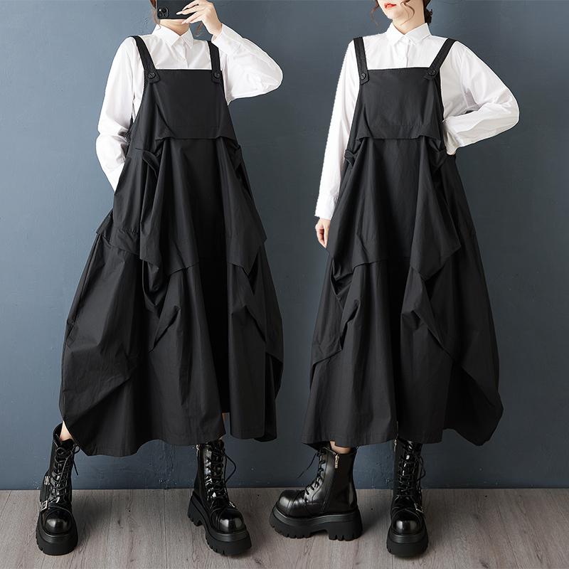DIMANAF 2025 Осень Женское Повседневное Длинное Платье Большого Размера Свободное Модное Женское Платье Макси Без Рукавов Черное — купить товар онлайн с бесплатной доставкой по всему миру!