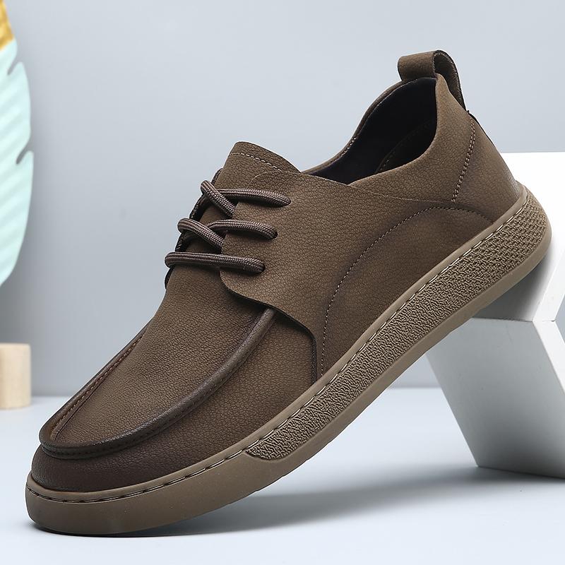 Стильная Модная Мужская Повседневная Обувь Удобные Кожаные Мужские Кроссовки Уличная Простая Мужская Обувь для Ходьбы Универсальная Обувь для Скейтборда