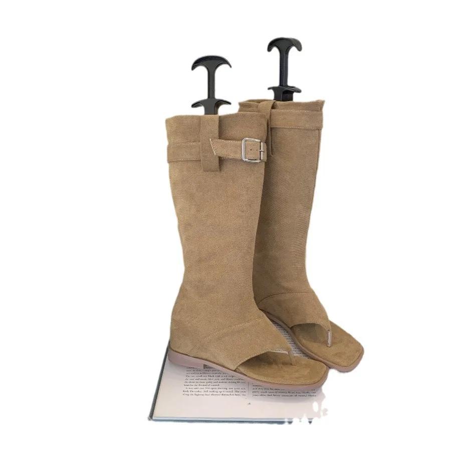 Женские сексуальные черные замшевые ботильоны с оборками Женские летние сандалии-гладиаторы на плоской подошве с зажимом для пальца Женские сандалии в стиле вестерн-ковбойские ботинки Mujer
