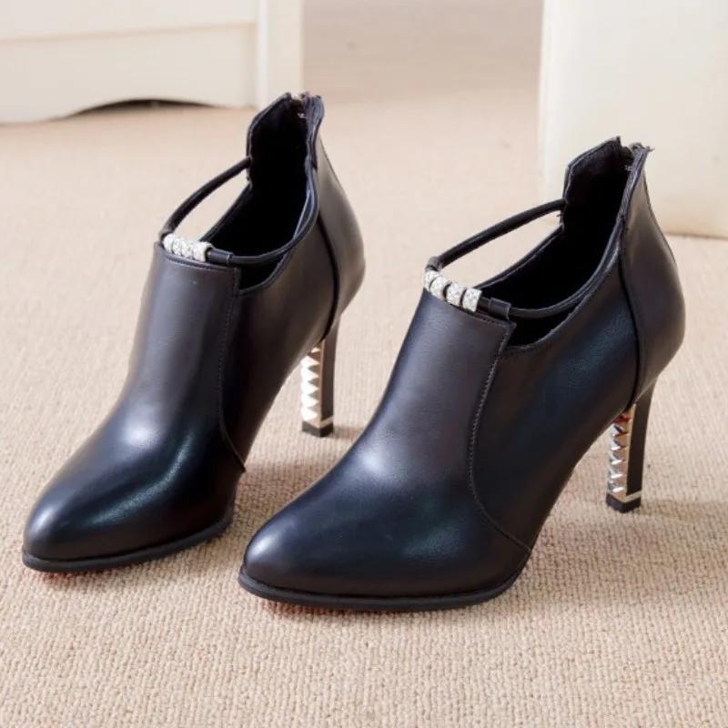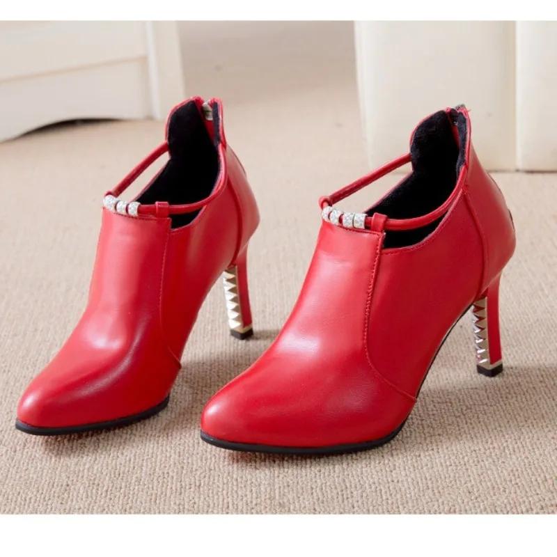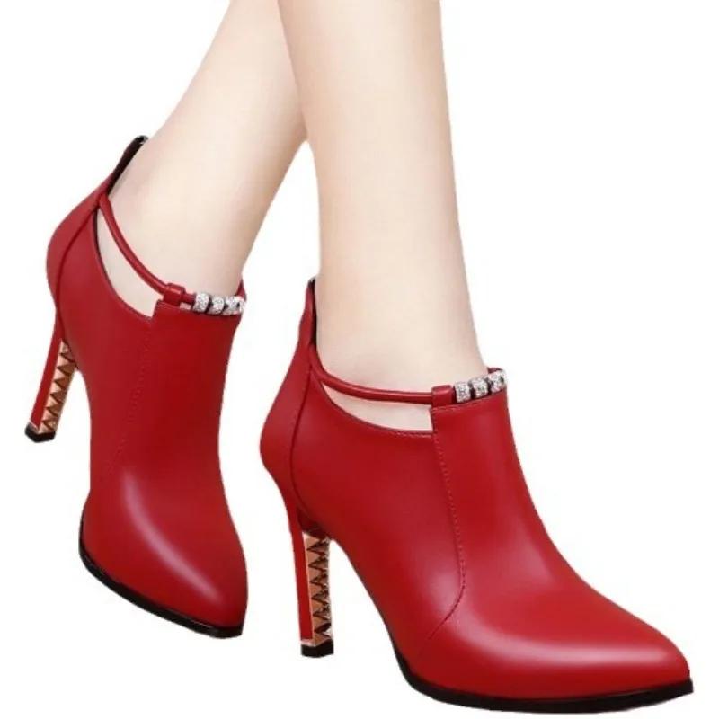 Женские элегантные ботильоны с острым носком, осенне-зимние, красные, с ремешком и пряжкой, из искусственной кожи, короткие ботинки, женские туфли на тонком каблуке для вечеринок