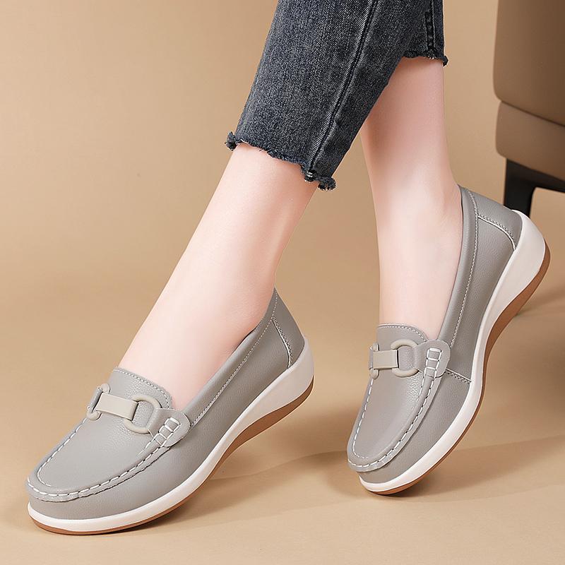 Туфли на танкетке Женские 2025 Новые Повседневные Классические Элегантные Кожаные Туфли Удобная Женская Обувь для Ходьбы