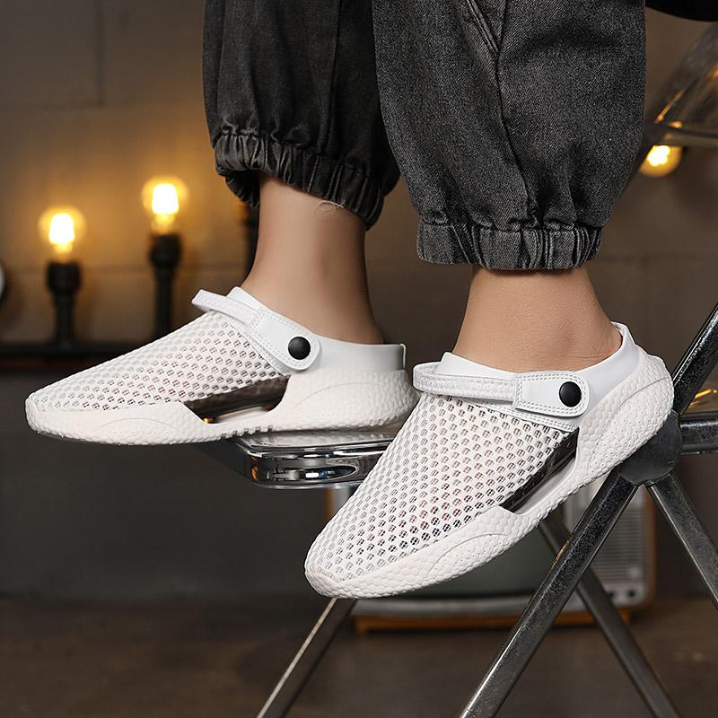 Мужские сандалии-шлепанцы большого размера 45, полушлепанцы, студенческие клоги, с закрытым носком, пляжная обувь, сандалии на холодном клее, летние с перфорацией