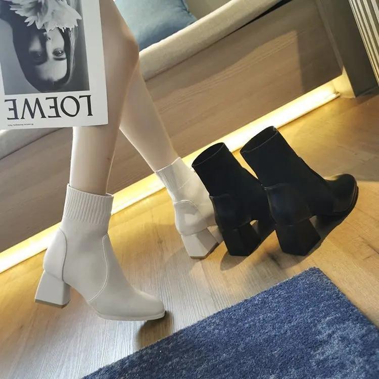 Высокие каблуки Осень Зима Эластичная вязка Ретро Ботильоны Женские Носки-ботинки Mujer Botas Altas Платформа Женские — купить товар онлайн с бесплатной доставкой по всему миру!