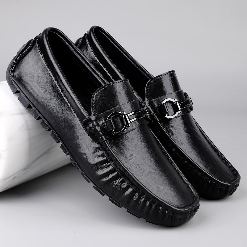 Новая весенняя мужская обувь слипоны, кожаные лоферы с металлической пряжкой, повседневная обувь, мокасины для делового человека, простая обувь для вождения