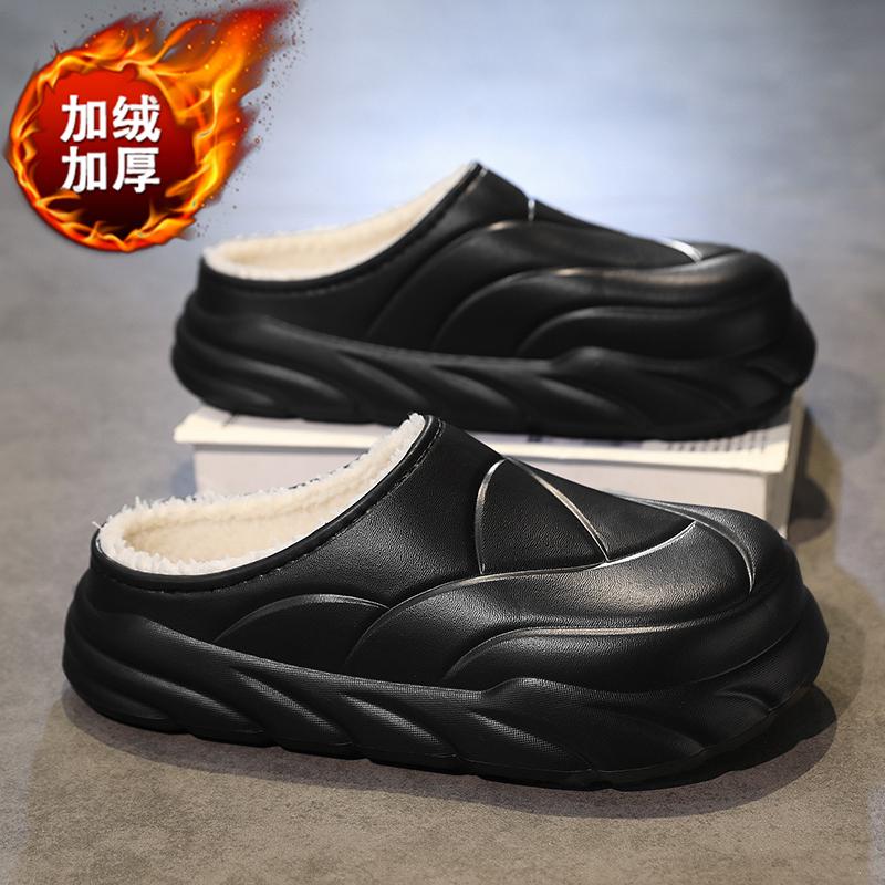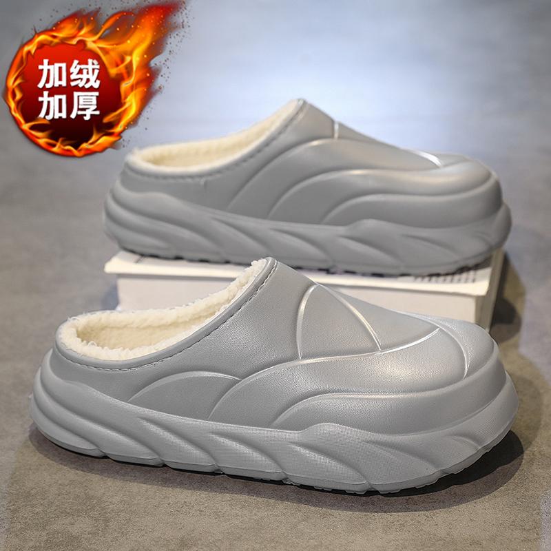 Зимние мужские меховые тапочки теплые тапочки мягкие домашние хлопковые тапочки EVA пуховые шлепанцы повседневные удобные плюшевые меховые сабо для улицы