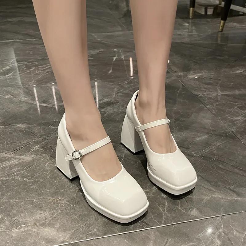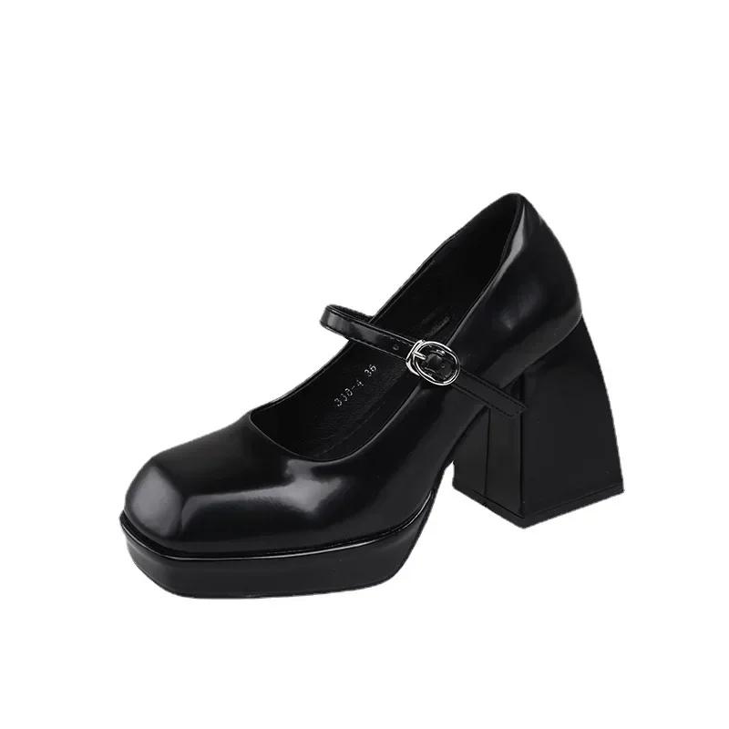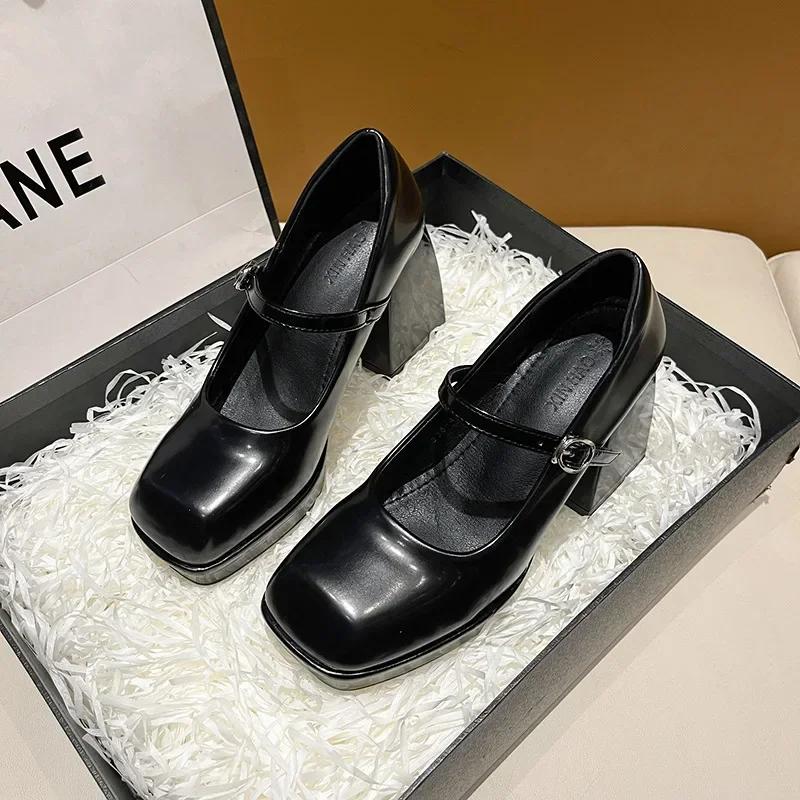 Ретро Толстый Каблук Квадратный Носок Маленькая Кожаная Туфля Женская Новая Мэри Джейн Французские Высокие Туфли