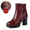 Зимние женские ботинки из натуральной кожи, теплые ботильоны на высоком каблуке, женские теплые зимние сапоги из толстой шерсти, элегантные высокие каблуки 2025