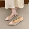 Сращивание мелкого горла французские заостренные туфли с одной педалью женские модные универсальные сандалии 2025 года с низким каблуком сзади с воздушными сандалиями для поездок на работу