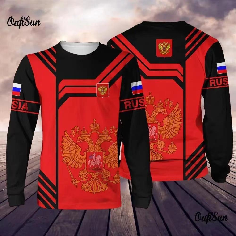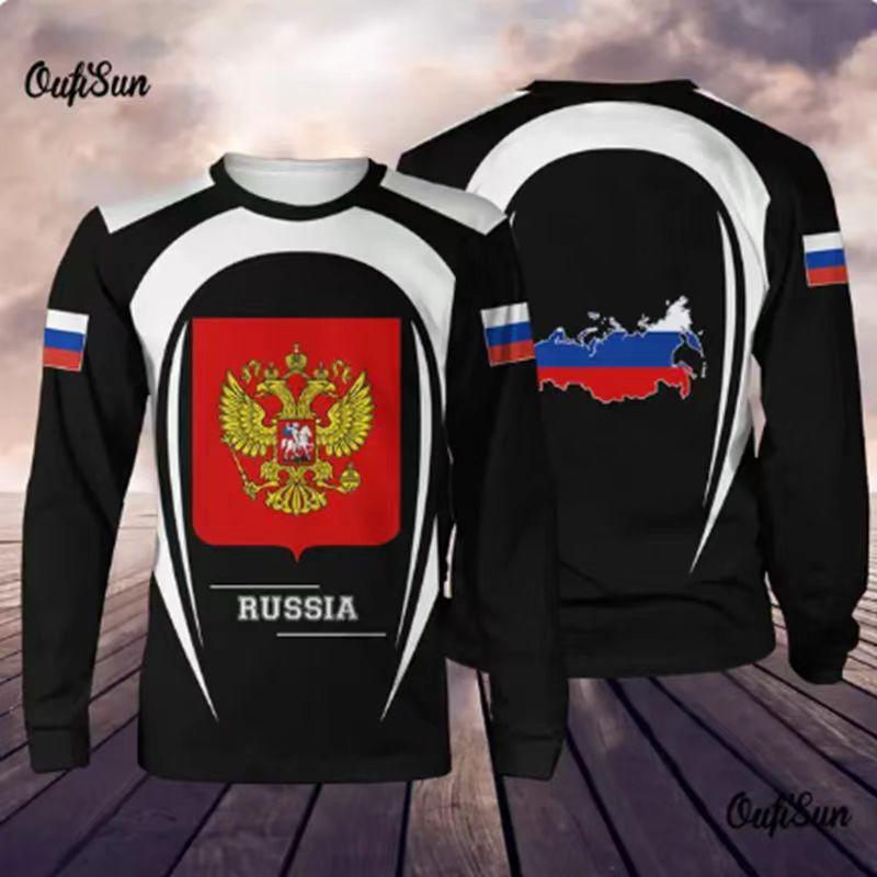 Футболки мужские с круглым вырезом и 3D-принтом в русском стиле, повседневные, с длинным рукавом - Мягкая полиэстеровая ткань средней эластичности, одежда для весны и осени, свободного кроя
