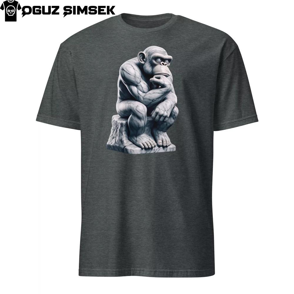 Мраморная статуя Мыслитель Шимпанзе Футболка унисекс с коротким рукавом Художественный дизайн