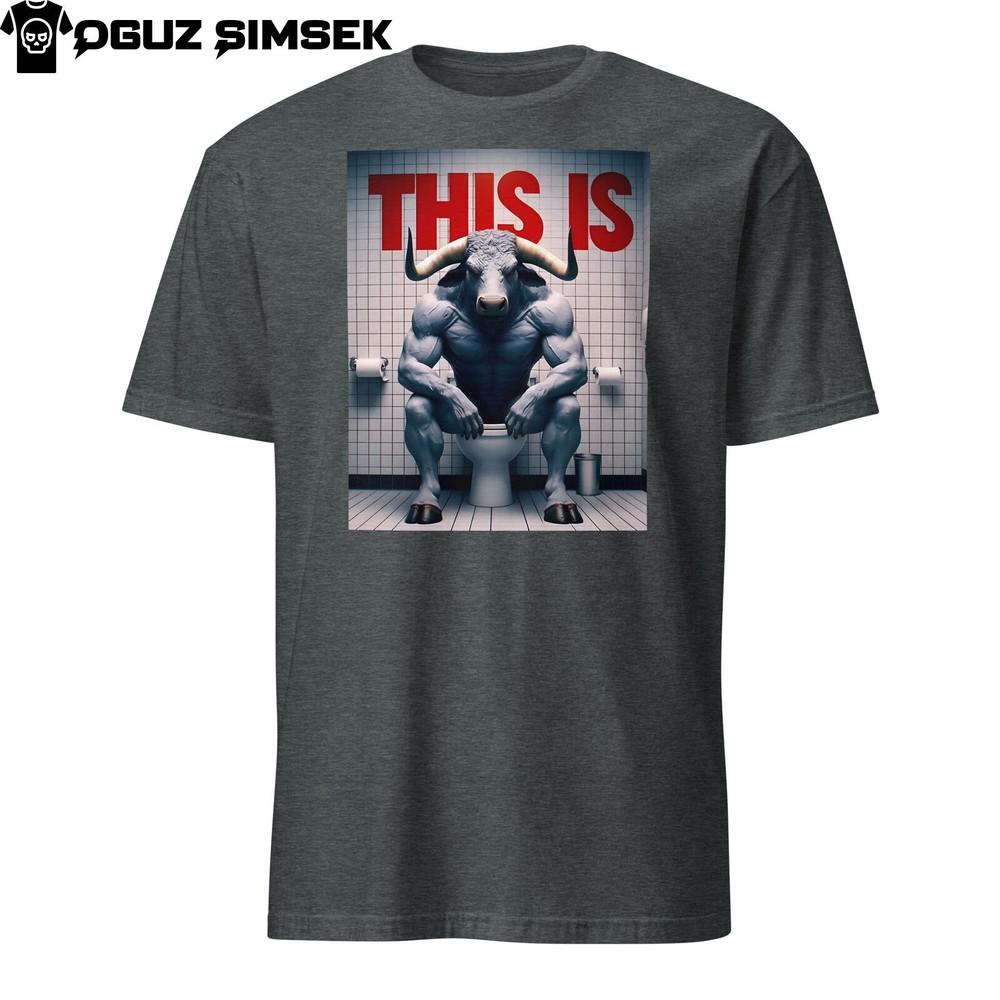 Funny Minotaur Bull Sitting On Toilet Red Text ''THIS IS'' T-Shirt Tee