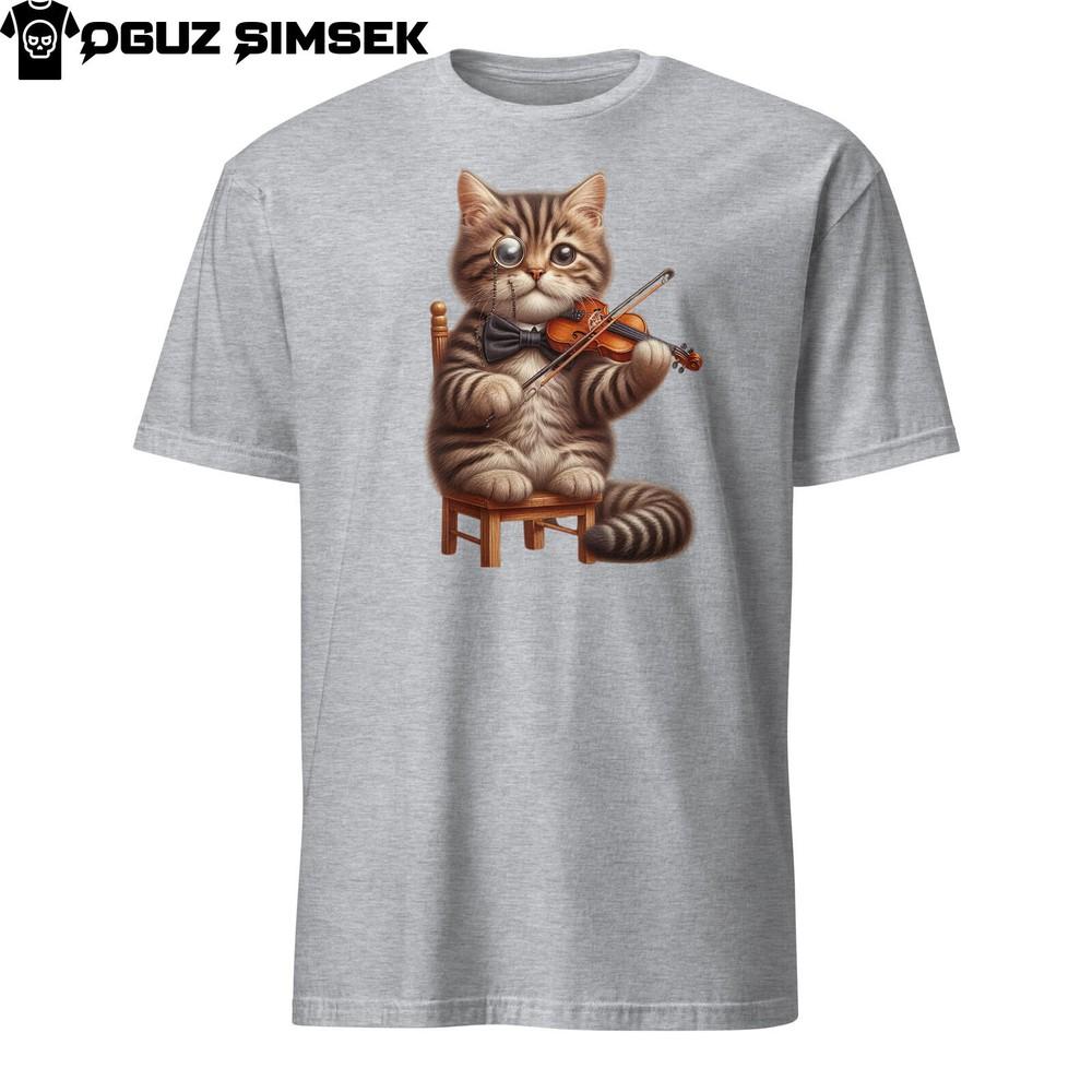 Унисекс футболка с коротким рукавом «Кот играет на скрипке» | Уникальная футболка с графикой музыканта