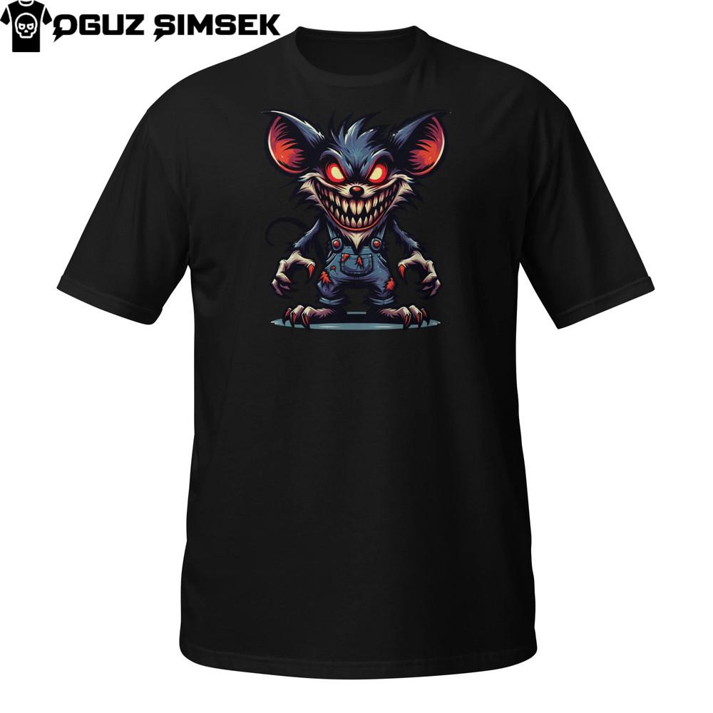 Злая мультяшная футболка с крысой | Грызун-монстр с красными глазами | Смешная футболка ужасов