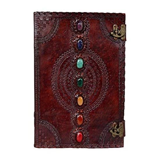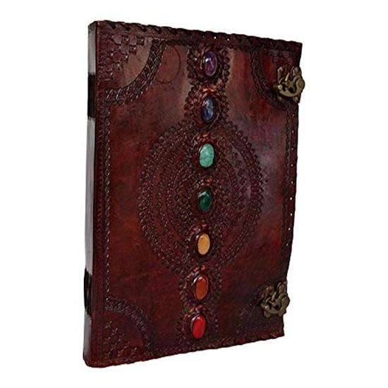 Кожаный журнал Книга Семь чакр Камень Тиснение Ручная работа Книга теней Блокнот 33,02 x 25,4 см