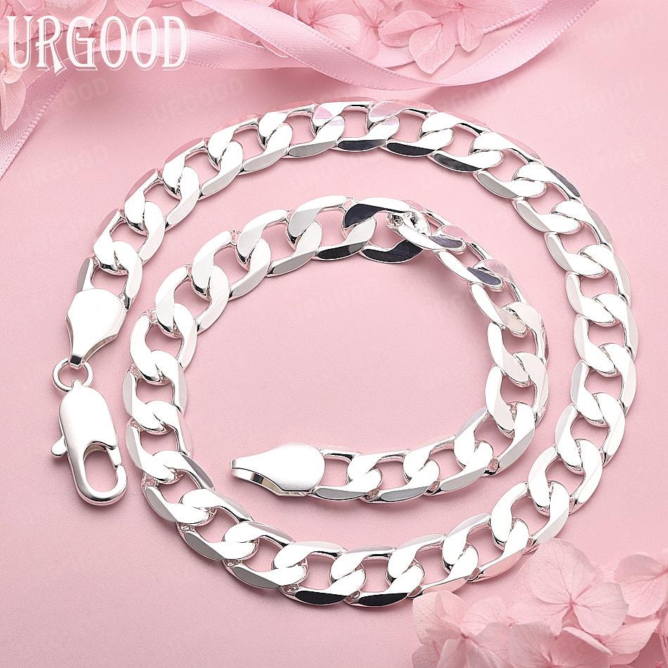 Ожерелье из стерлингового серебра 925 пробы, боковая цепочка 12 мм, 16-30 дюймов, свадебное украшение — купить товар онлайн с бесплатной доставкой по всему миру!