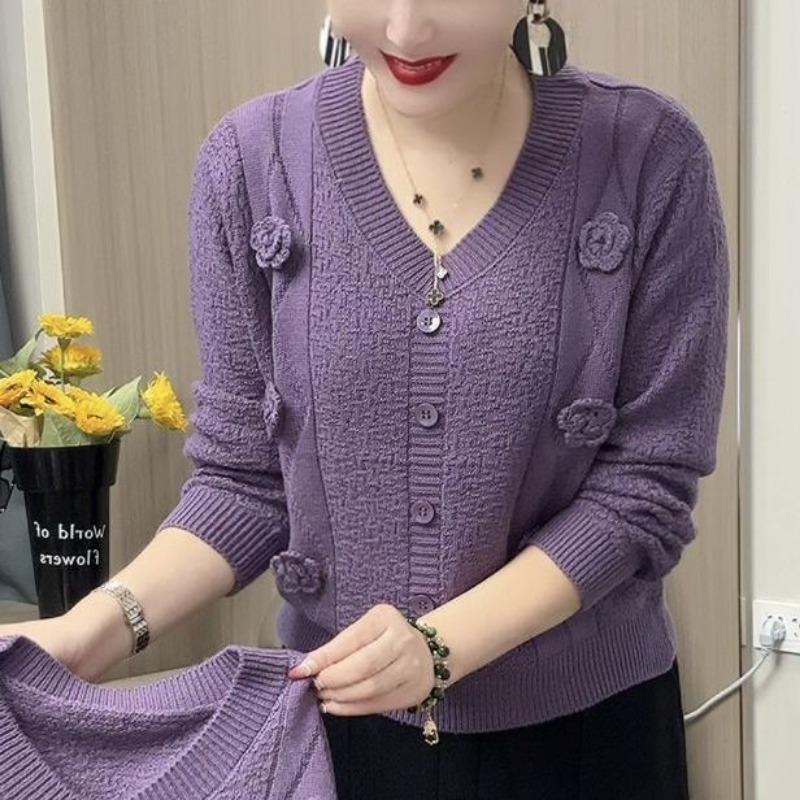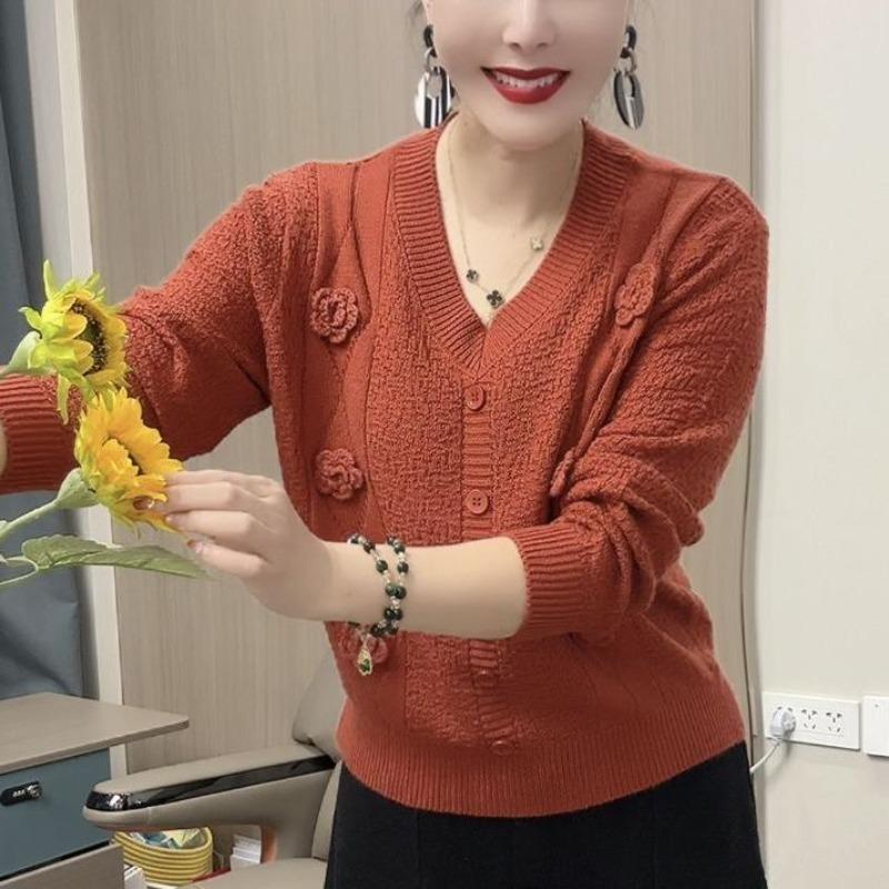 Вязаный свитер Осень Зима Корейский стиль Универсальная мода Цветочный свитер Топ