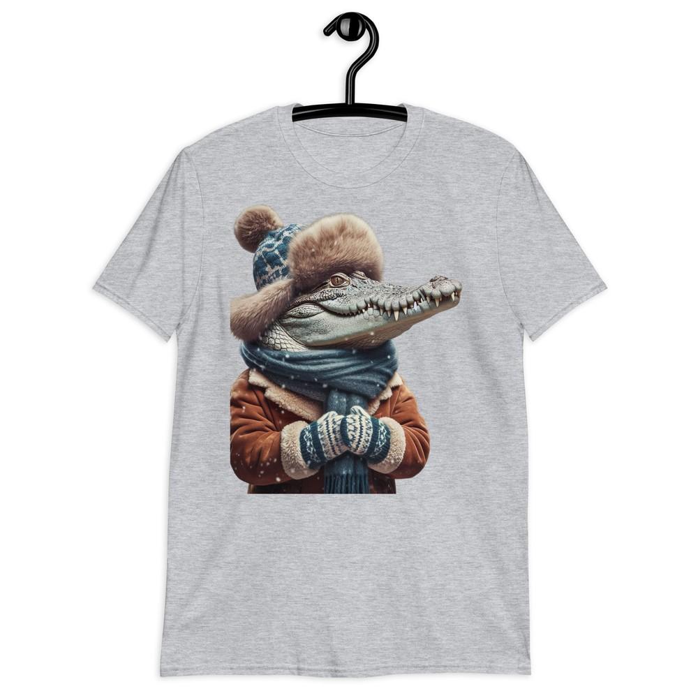 Забавная зимняя футболка унисекс с коротким рукавом с графикой крокодила - Футболка с юмором про животных!