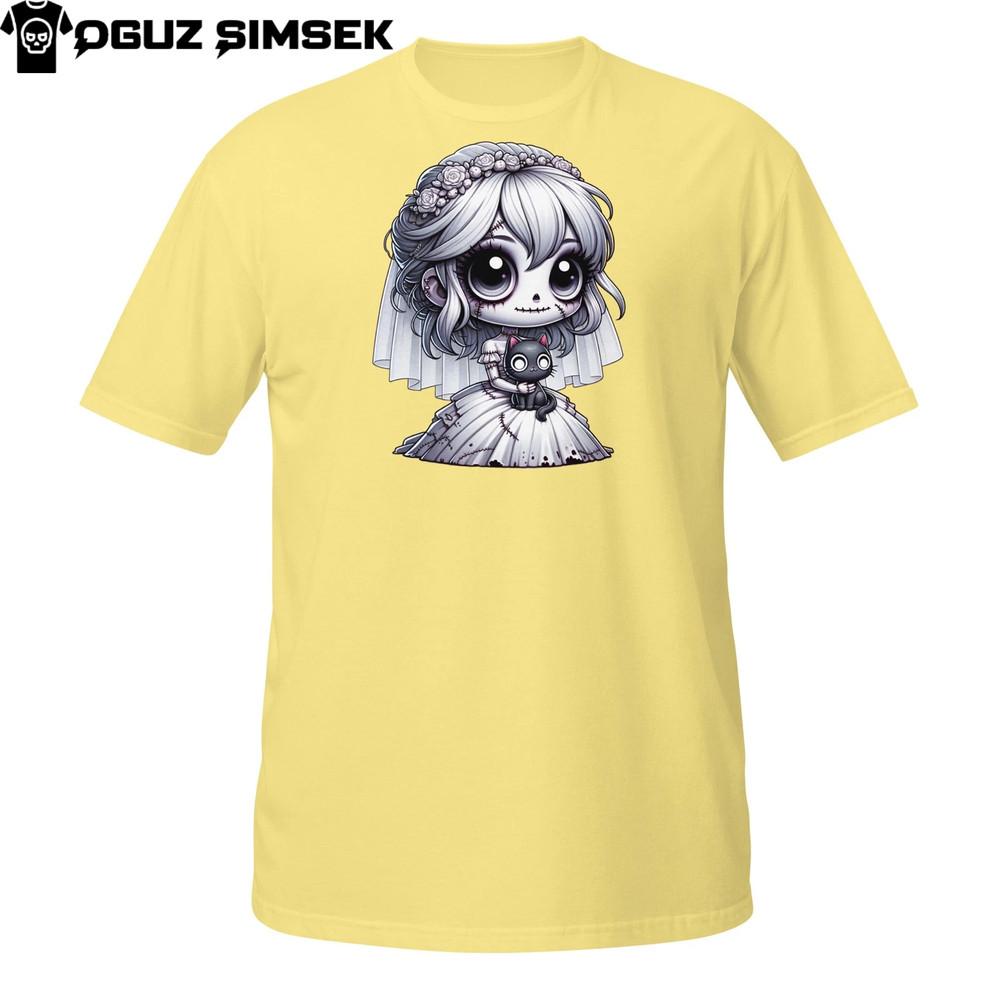 Undead Bride Tee – Creepy Cute Girl Holding Skull Kitty