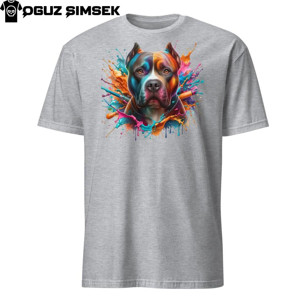 Красочная футболка унисекс с питбультерьером | Яркая футболка с графикой собаки, короткий рукав