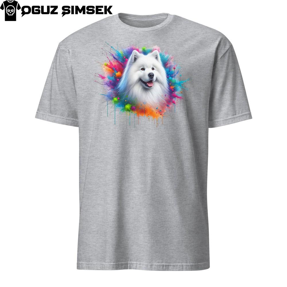 Красочная унисекс футболка с самоедом | Яркий дизайн | Футболка с коротким рукавом