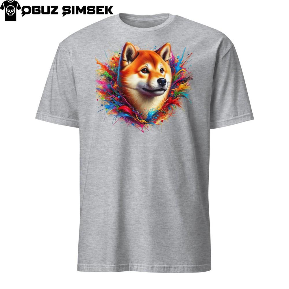 Красочная футболка унисекс с шиба-ину: Яркий дизайн с собакой, футболка с коротким рукавом