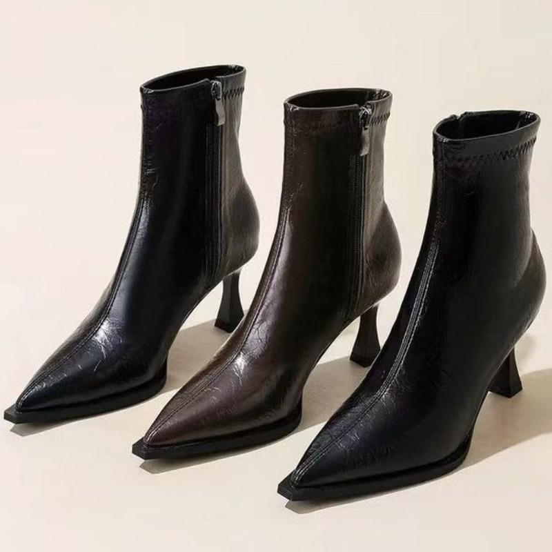 Роскошные женские ботильоны на высоком каблуке с острым носком, модная обувь, сексуальные элегантные женские туфли-лодочки 2025 зима, дизайнерские ботильоны для женщин
