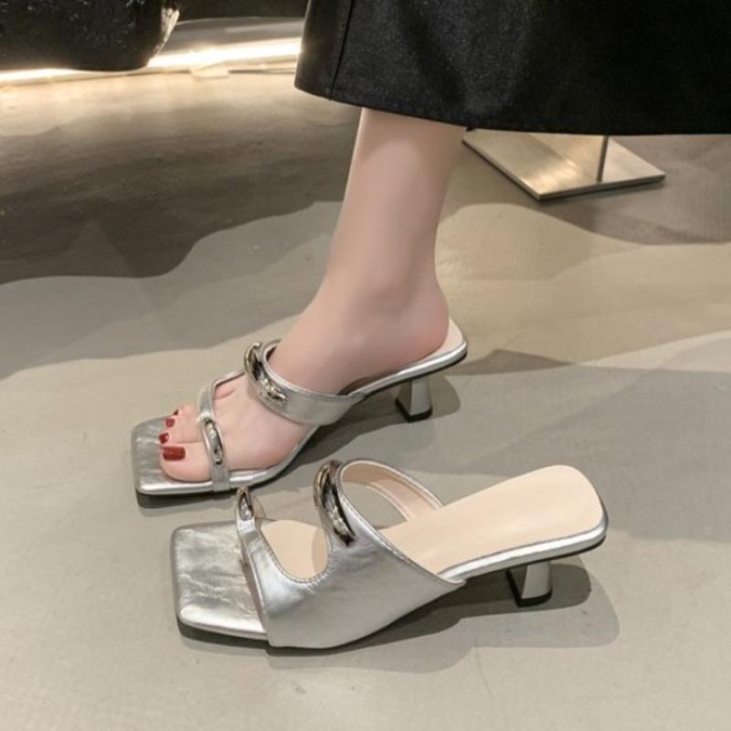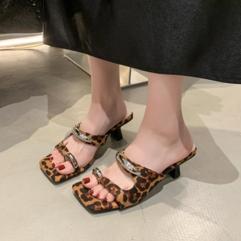 Сексуальные леопардовые женские тапочки с квадратным носком, туфли на высоком каблуке, массивные сандалии, дизайнерские новинки 2025, летние вечерние туфли с перемычкой для пальца, женские туфли-лодочки
