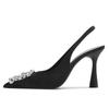 Элегантные женские туфли-лодочки с хрустальной пряжкой Лето 2025 Сексуальные туфли-лодочки с острым носком и высоким каблуком Сандалии Женские с ремешком сзади Вечерние свадебные туфли Женские
