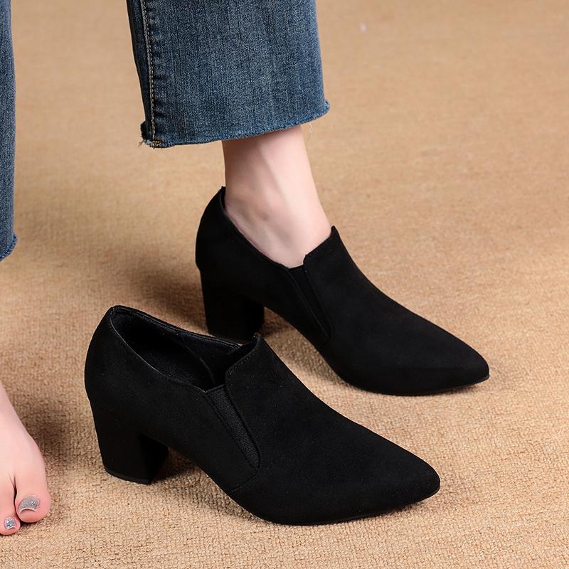 Женские туфли на высоком каблуке с острым носком Элегантные лодочки Офисные замшевые туфли Женские 2025 Осенняя мода Массивные Платье Сексуальные Женские Кроссовки