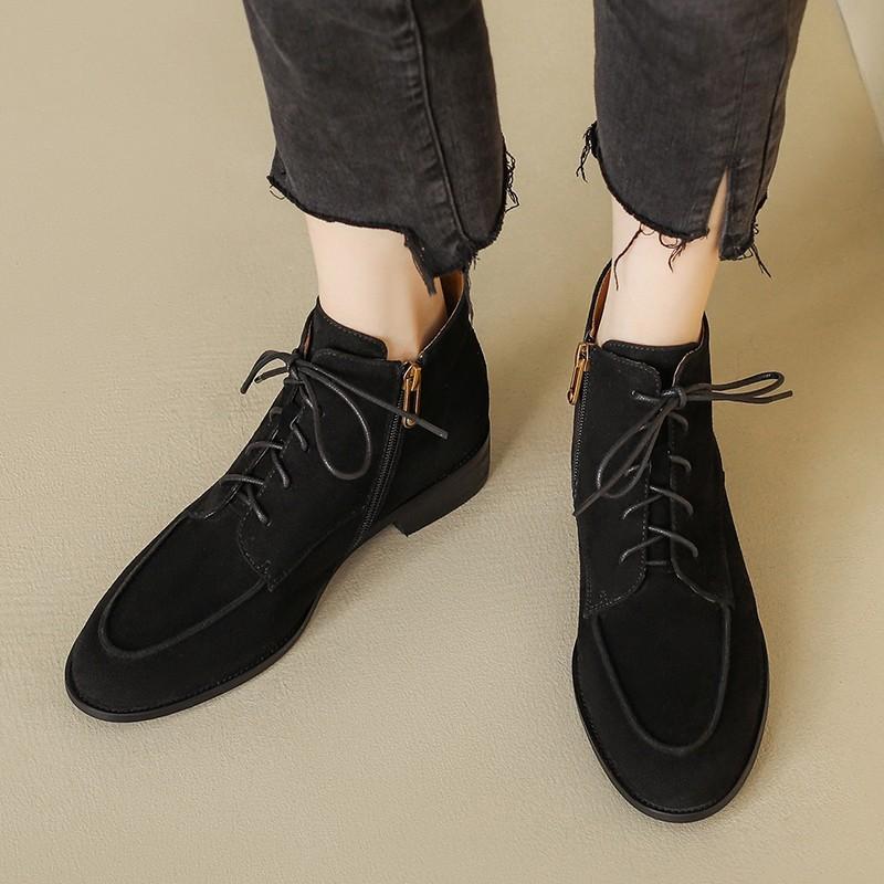 Женские ботинки 2025 на весну-осень, из овечьей замши, с круглым носком, квадратным каблуком, базовые ботильоны, зимняя обувь, женская мода