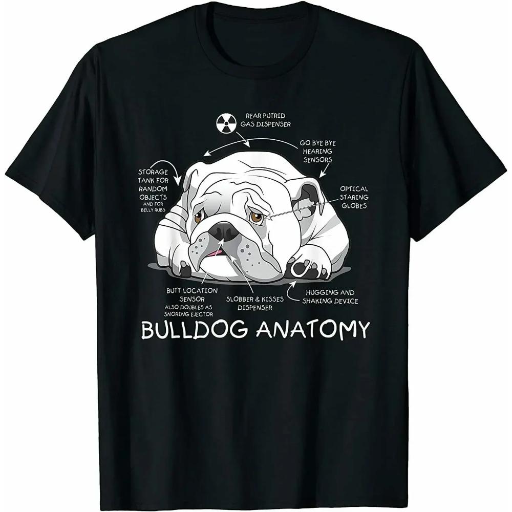 Забавная милая подарочная футболка с анатомией английского бульдога и биологией собаки