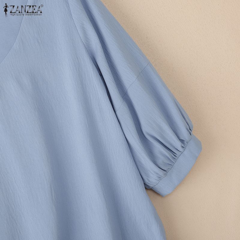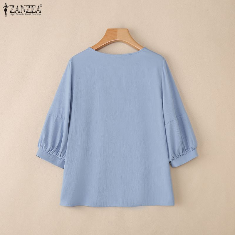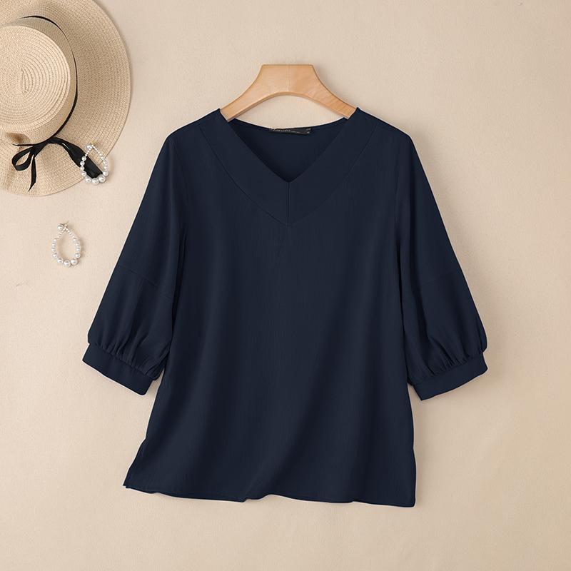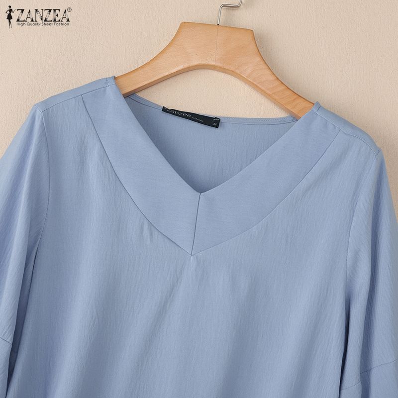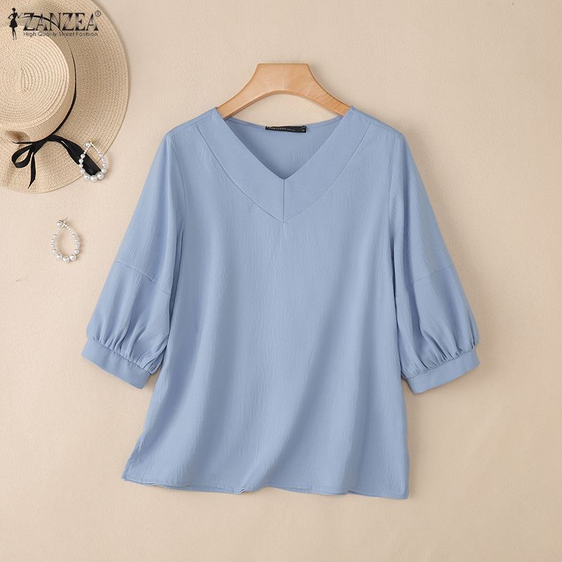 ZANZEA Женская повседневная однотонная блузка с v-образным вырезом и рукавами 3/4
