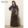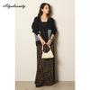Корейская мода Осень Зима Женский кардиган V-образный вырез Черный Серый Абрикосовый Вязаный верхняя одежда Повседневный Свободный Дамский Джинсовый пэчворк Стильное пальто