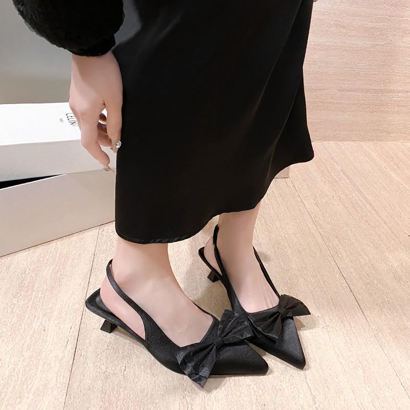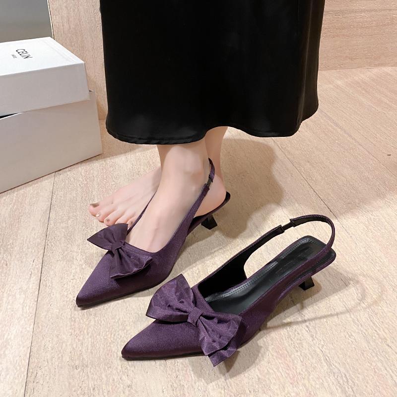 Туфли-лодочки женские с бантом, с острым носком, на среднем каблуке, элегантные, 2025, модный тренд, дизайнерские, летние сандалии для женщин