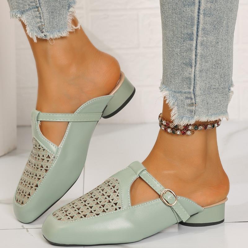 Женские сандалии-мюли с закрытым носком, с вырезами, на плоской подошве, с пряжкой, мягкой подошвой, нескользящие, летние, легкие, удобные, на платформе, пляжная обувь