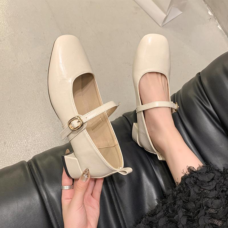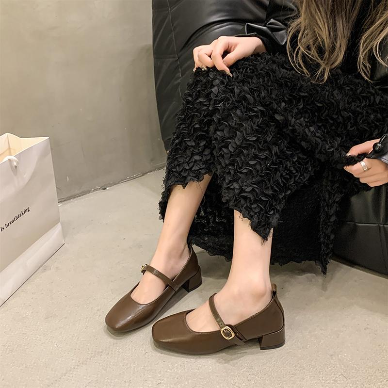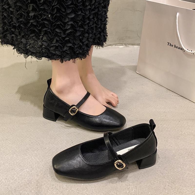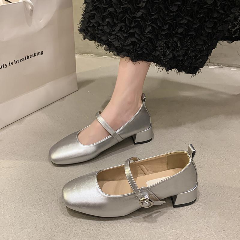 Новые женские туфли-лодочки Базовые туфли Мэри Джейн Квадратный носок Ремешок с пряжкой Туфли для платья Серебристые Черные Средний каблук Zapatos Mujer Осень