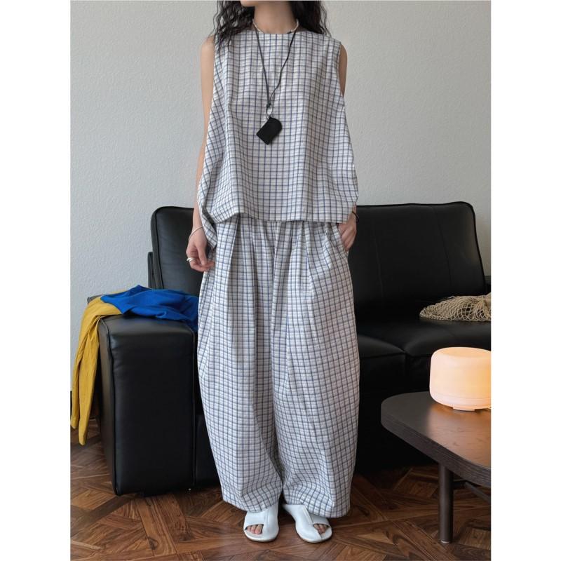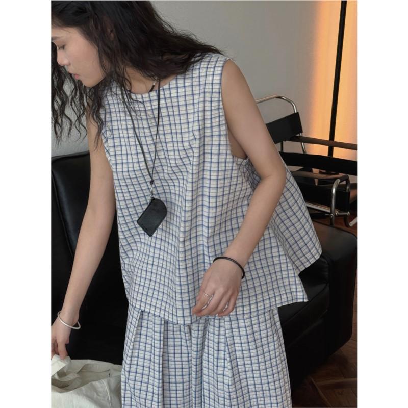 Johnature Корейские простые пуловеры в клетку Летние повседневные тонкие удобные топы без рукавов Женские