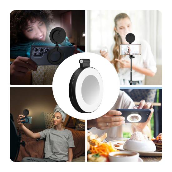 Совместимый со всеми телефонами и создателями, этот магнитный свет для селфи безупречно работает как с iPhone, так и с устройствами Android.. Он даже включает дополнительное магнитное кольцо для немагнитных корпусов, гарантируя, что каждый создатель сможет наслаждаться освещением профессионального уровня без громоздкого оборудования.. Поднимите качество создания контента с помощью заполняющего света - где гибкость сочетается с контролем для идеального решения для освещения в любое время и в любом месте.