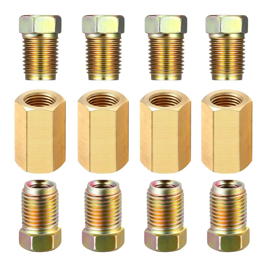 Фитинги для тормозных трубок 12 штук Автомобильные соединители Резьба 7/16-24 Гайки Ассортимент для 1/4" Фитинги для трубок тормозной магистрали кемпера