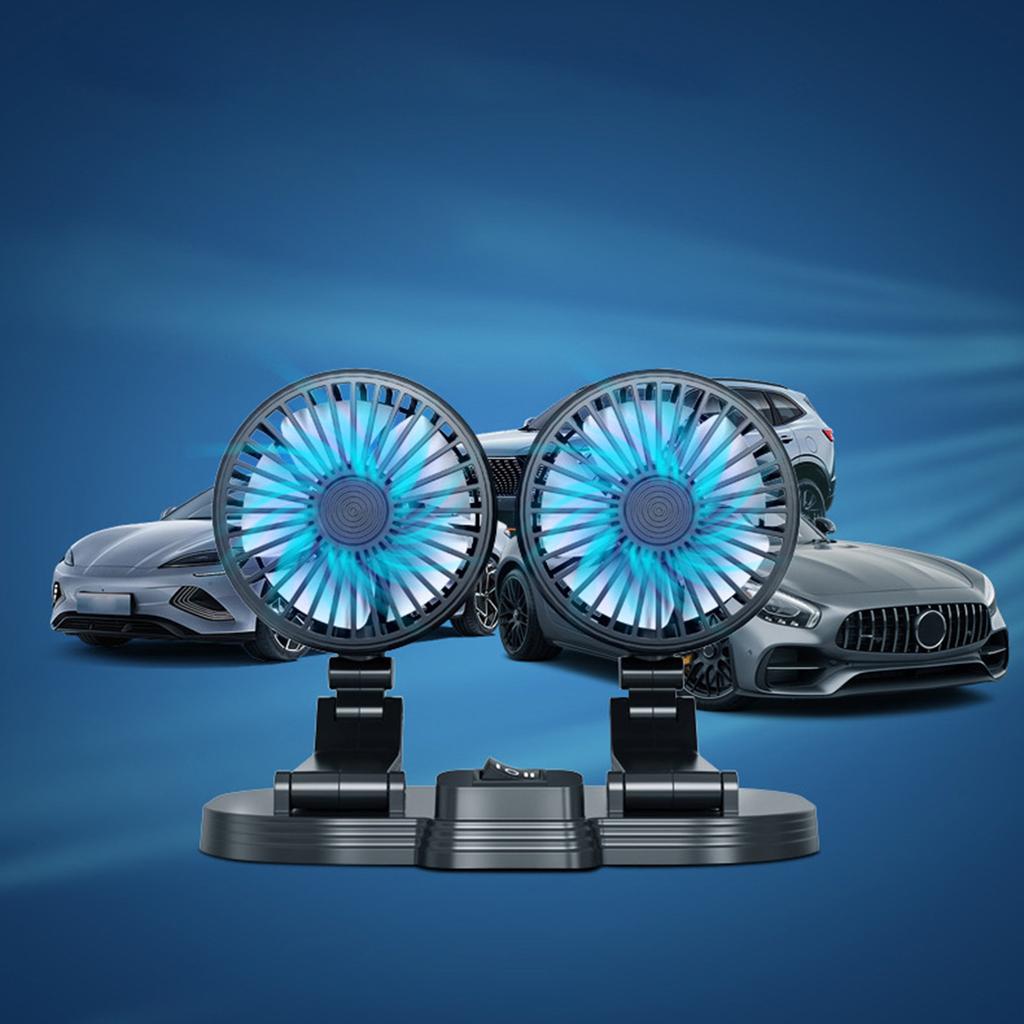 Автомобильный вентилятор с двойной головкой, вращение на 360°, 2 скорости, регулируемый охлаждающий вентилятор для автомобилей, крепление на приборную панель, вентилятор-охладитель с питанием от USB