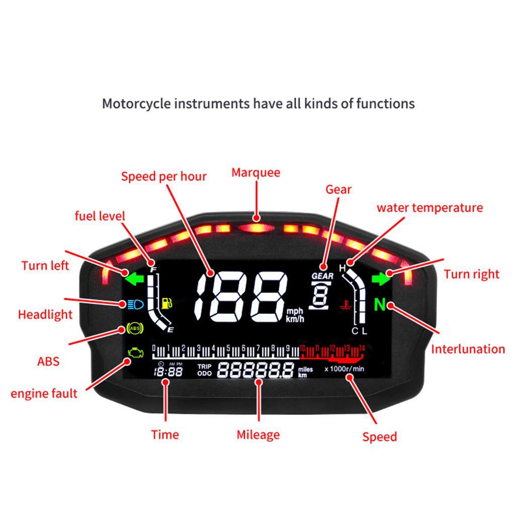 Цифровой датчик 12 В для мотоциклов, спидометр/тахометр/одометр, универсальный с многофункциональным индикатором