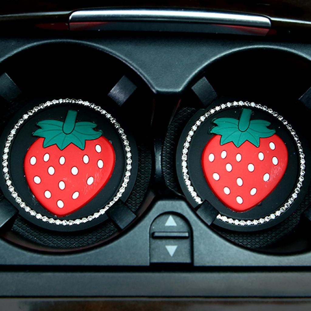 Коврик для автомобильного держателя чашки с ромбовидными шипами, круглый силиконовый противоскользящий коврик с клубничным мультяшным дизайном для автомобиля для женщин и мужчин