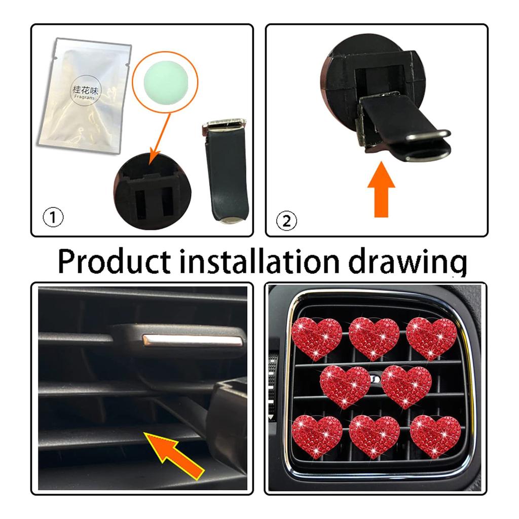 Автомобильный освежитель воздуха с зажимом в виде сердца с бриллиантами, портативный и стильный автомобильный освежитель воздуха, элегантный и освежающий декор для автомобиля