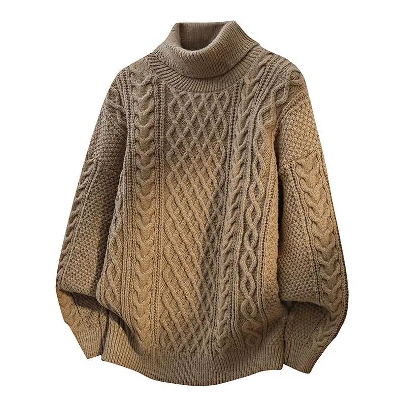 Мужские повседневные свитеры с косами Осень-Зима 2025, однотонный свитер с высоким воротником, мужской трикотажный топ с высоким горлом, мужские флисовые пуловеры